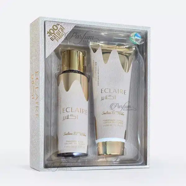 Succombe à la douceur du coffret Éclaire de Sultan El Waha, une alliance gourmande et enveloppante de vanille crémeuse, notes lactées et sucre fondant. Un rituel parfumé irrésistible pour une peau délicatement parfumée, douce et addictive.
