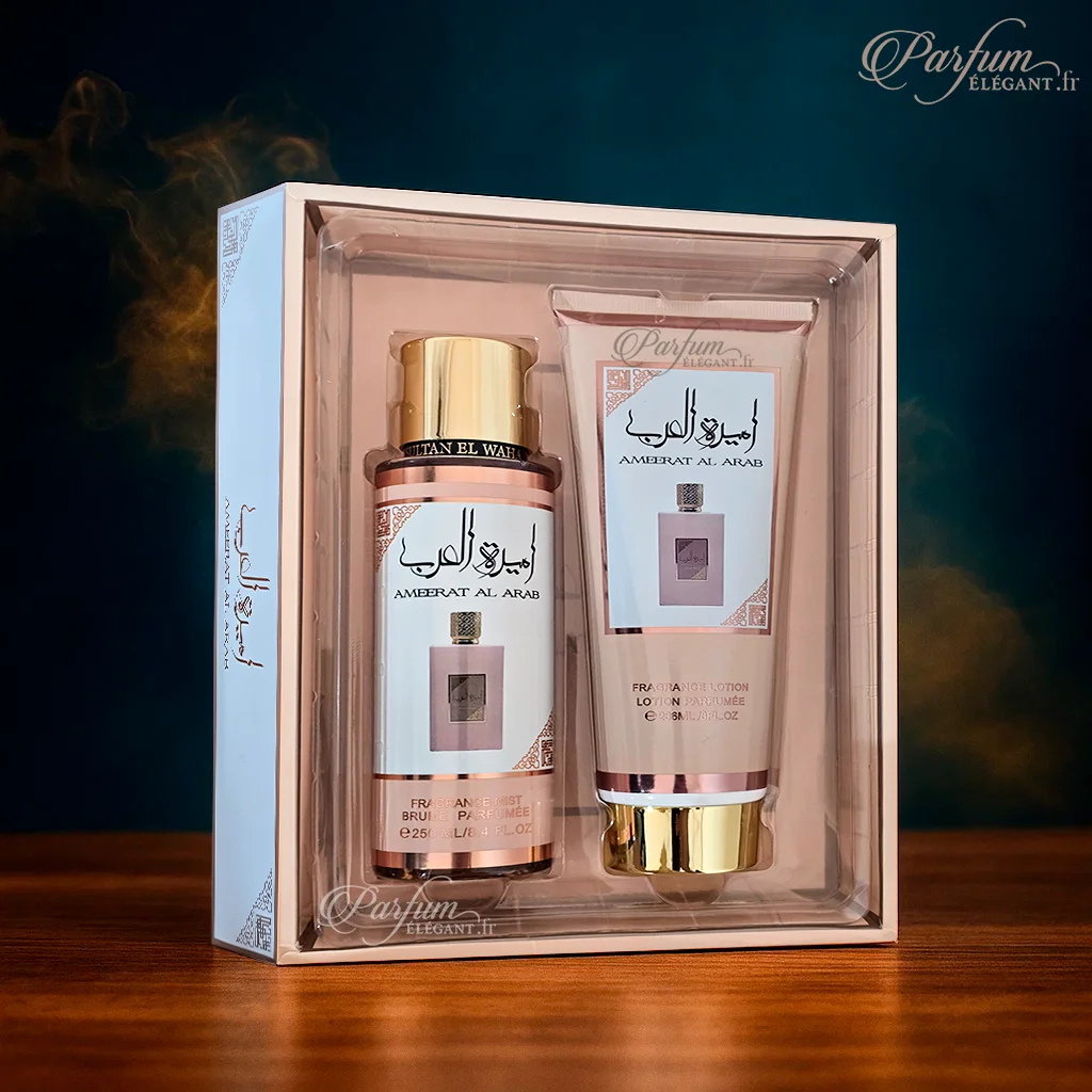 Inspiré du parfum oriental Ammerat Al Arab, ce duo laisse sur la peau un sillage floral, ambré et musqué irrésistible.