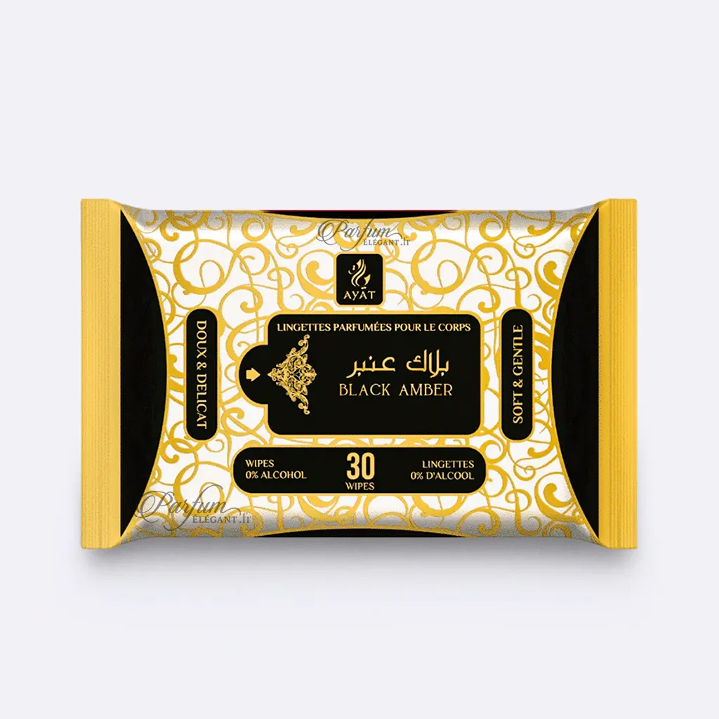 Offrez-vous une expérience de soin parfumée avec les lingettes Black Amber d’Ayat.