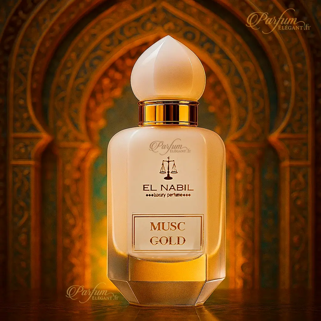 Succombez à Musc Gold, un parfum oriental et musqué signé El Nabil, qui allie chaleur et élégance dans une fragrance mixte intemporelle.