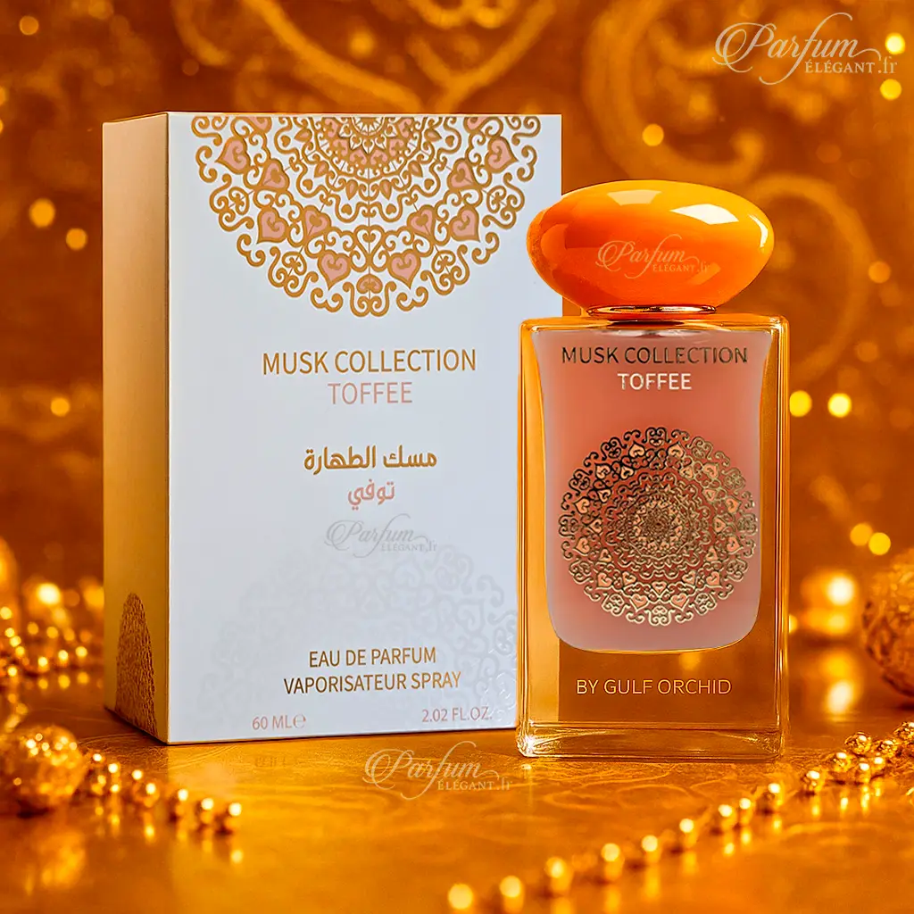 Musk Collection Toffee dévoile une composition chaleureuse et gourmande où le caramel et la vanille se marient au musc et à l’ambre pour une expérience olfactive douce et élégante.