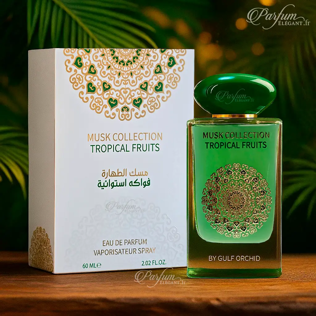 Musk Collection Tropical Fruits séduit par sa combinaison unique de notes fruitées, boisées et musquées, créant une fragrance à la fois fraîche, élégante et enveloppante.