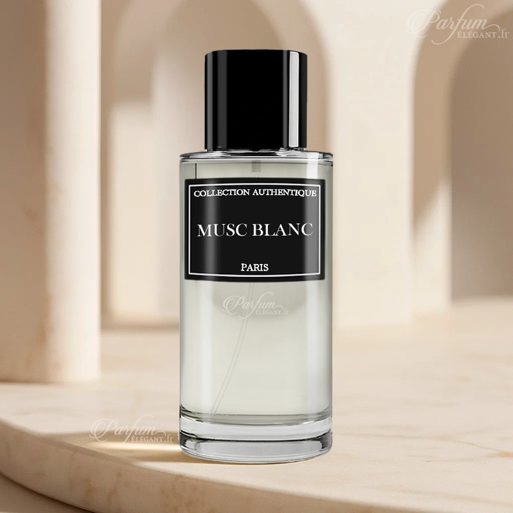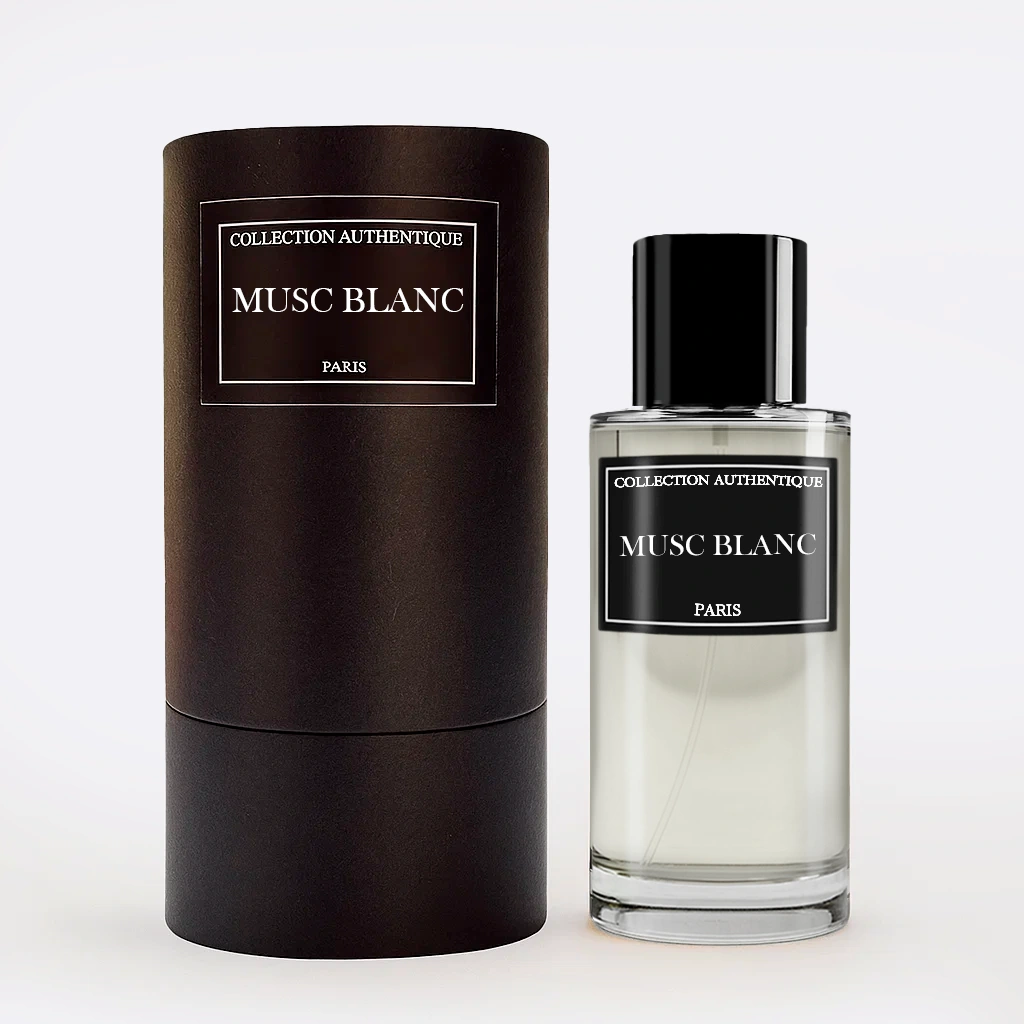 Musc Blanc – Collection Privée L’Authentique (Eau de Parfum Mixte 50 ml) : une fragrance pure, lumineuse et élégante, dominée par le musc blanc, les fleurs soyeuses et un fond boisé délicat. Un parfum à la fois propre, sensuel et raffiné pour homme et femme.