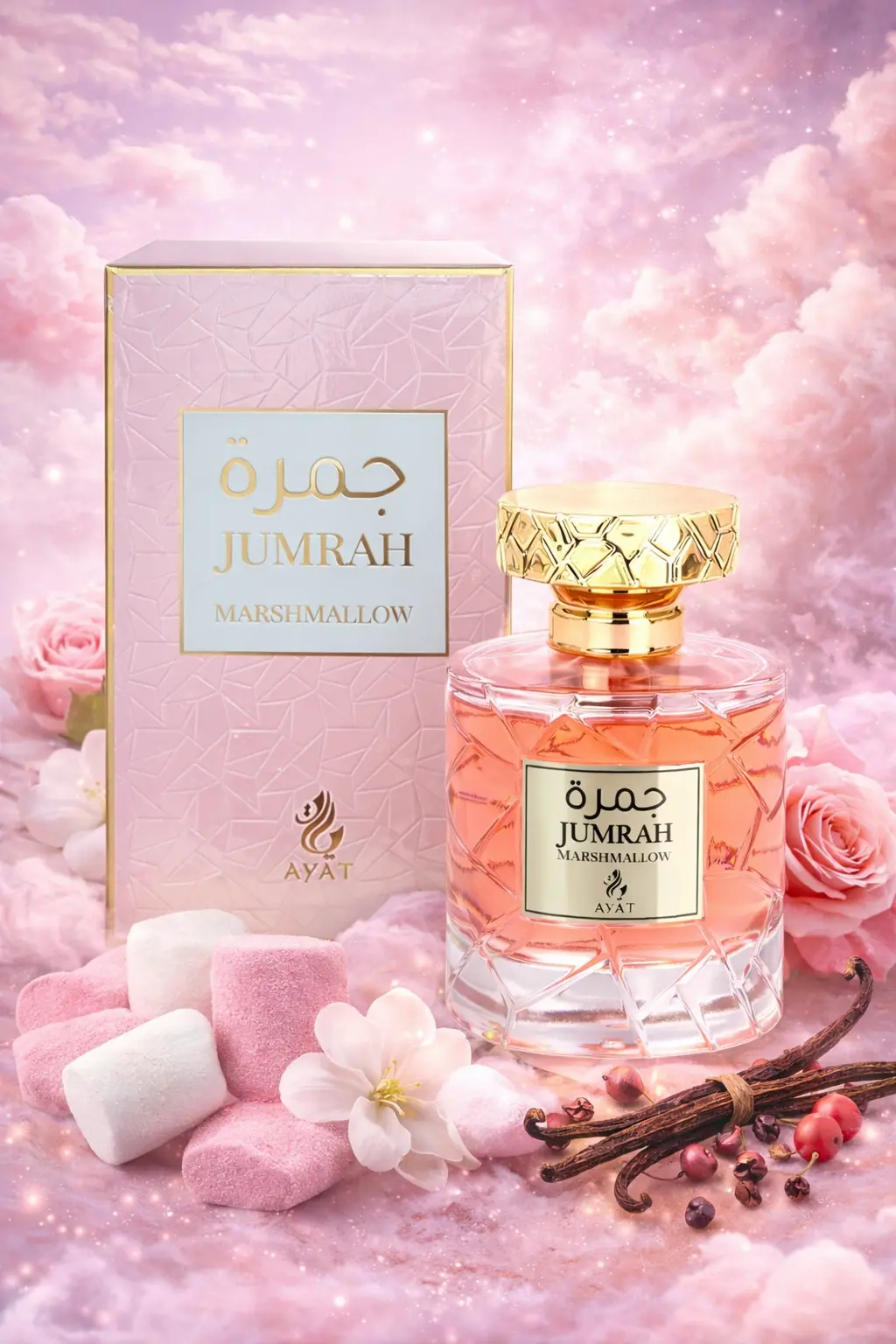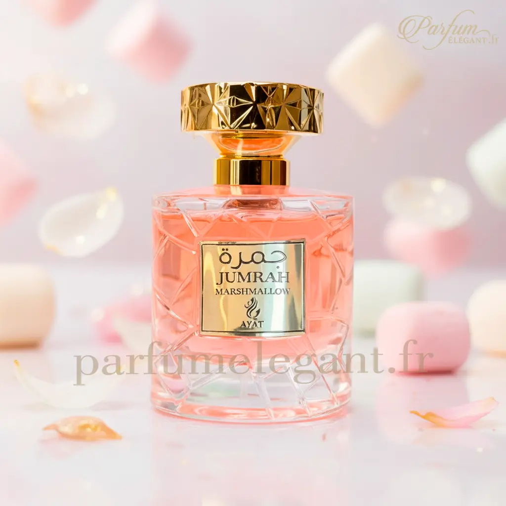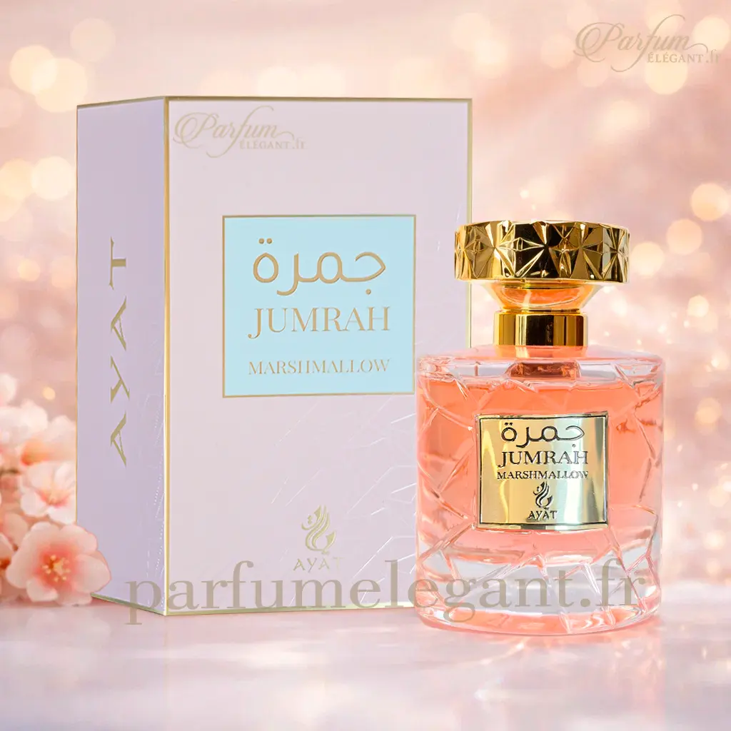 Jumrah Marshmallow est un parfum mixte doux et addictif signé Ayat. Une fragrance gourmande et réconfortante mêlant fleurs délicates, fruits tropicaux et vanille musquée, parfaite pour les amateurs de parfums sucrés et cocooning.