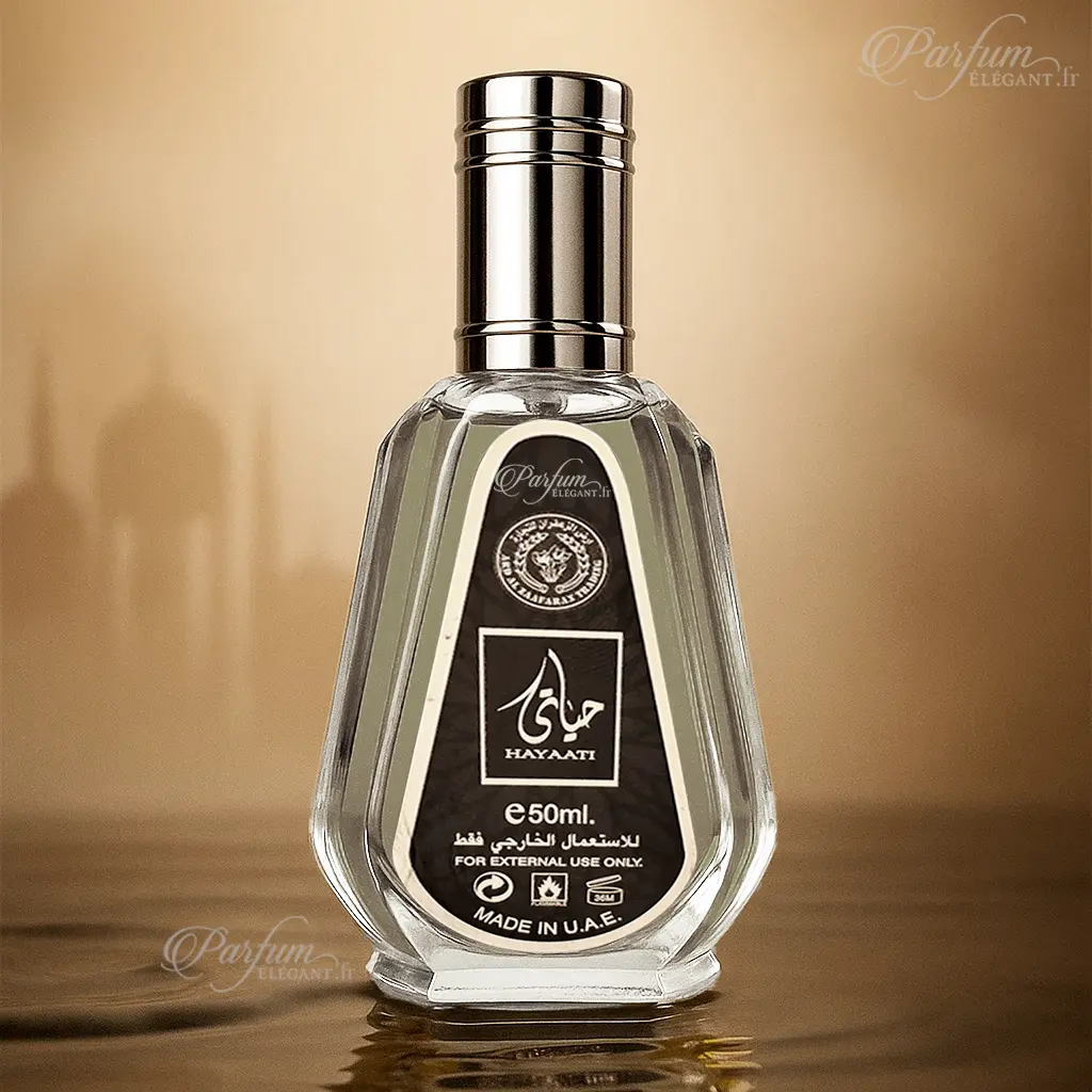 Hayaati est un parfum homme frais, aquatique et moderne. Une explosion d’agrumes et de notes marines, relevée par un cœur aromatique et un fond boisé-ambre musqué. Une alternative raffinée aux fragrances sportives iconiques pour hommes.