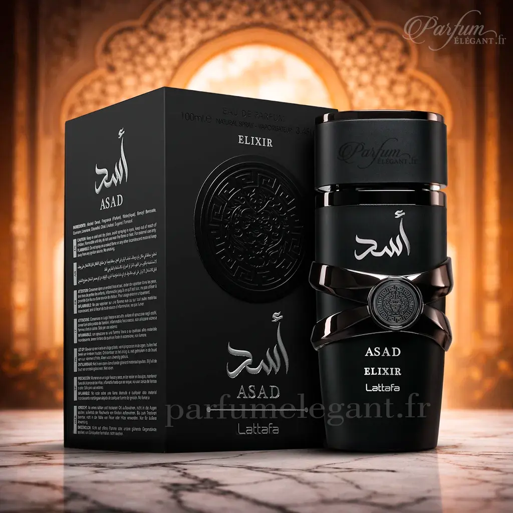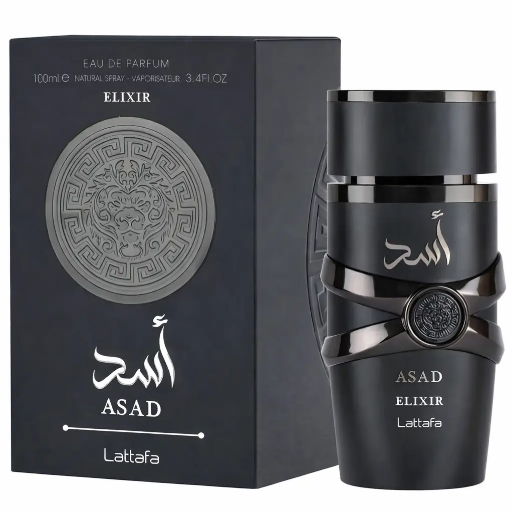 Asad Elixir est un parfum puissant et charismatique signé Lattafa. Un oriental ambré intense mêlant épices, vanille et bois profonds, pensé pour ceux qui aiment les sillages marquants et élégants.