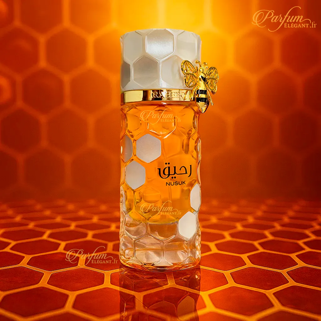 Raheeq de Nusuk allie fraîcheur fruitée, douceur florale et notes gourmandes pour une signature olfactive moderne et séduisante.