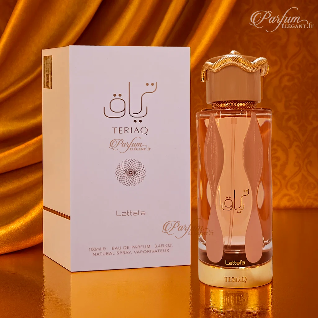 Laissez-vous séduire par Teriaq, un parfum féminin oriental gourmand où le caramel, l’amande et l’abricot s’entrelacent avec le miel et la vanille pour une fragrance riche, élégante et séduisante.