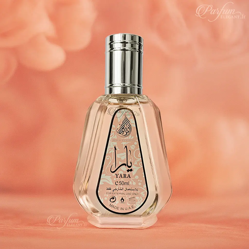 Découvrez Yara Ard Al Zaafran, un parfum féminin gourmand, crémeux et floral, inspiré du fameux Yara Lattafa, avec une touche plus douce et enveloppante.